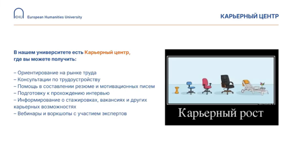 Прадстаўнік універсітэта Алег Буркоў падкрэсліў, што ЕГУ ў першую чаргу арыентуецца на беларускіх абітурыентаў у выгнанні і імкнецца стварыць для іх бяспечную і якасную адукацыйную прастору: