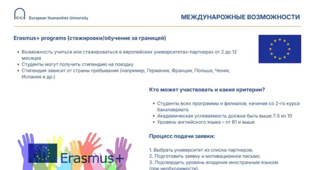 У Еўрапейскім гуманітарным універсітэце прайшоў анлайн Дзень адкрытых дзвярэй, падчас якога будучым абітурыентам распавялі пра ўмовы паступлення на 2026/2027 навучальны год і магчымасці навучання ў Вільні.