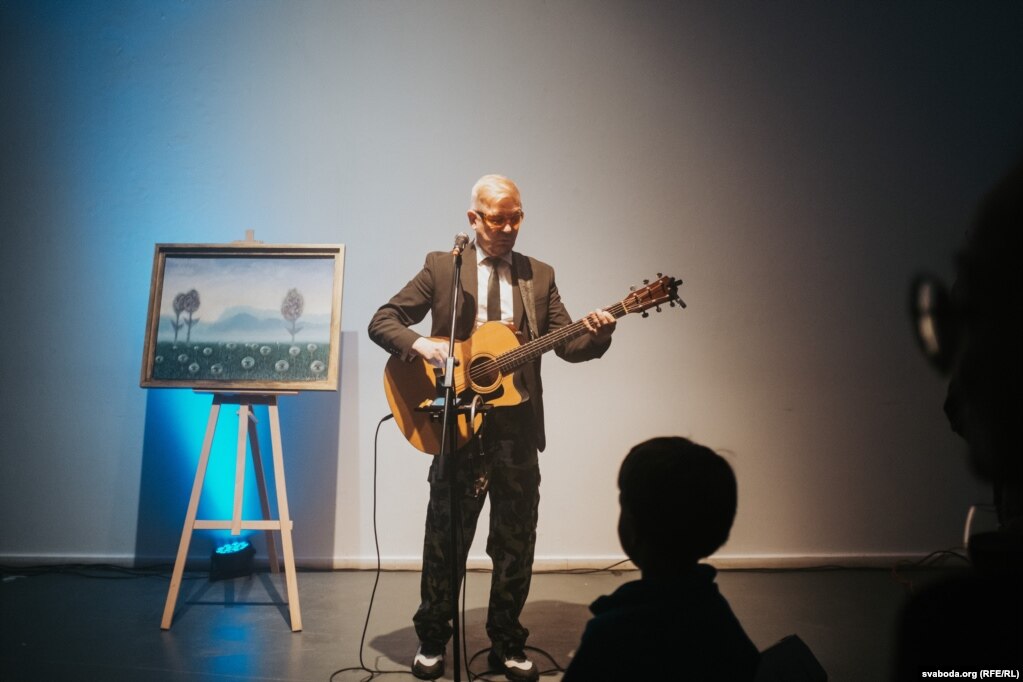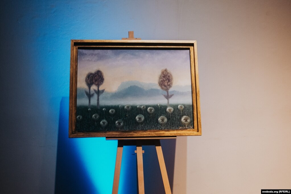 «На карцінах багата туману, холаду, ценяў, неакрэсьленасьці — відаць, так аўтар бачыць сёньняшні дзень ці будучыню свайго краю — Беларусі» — напісана ў анатацыі да выставы. Але песьні для выступу на адкрыцьці выставы Лявон Вольскі падабраў досыць аптымістычныя.
