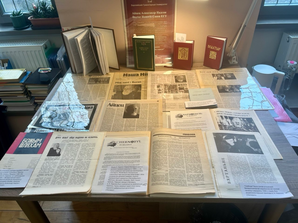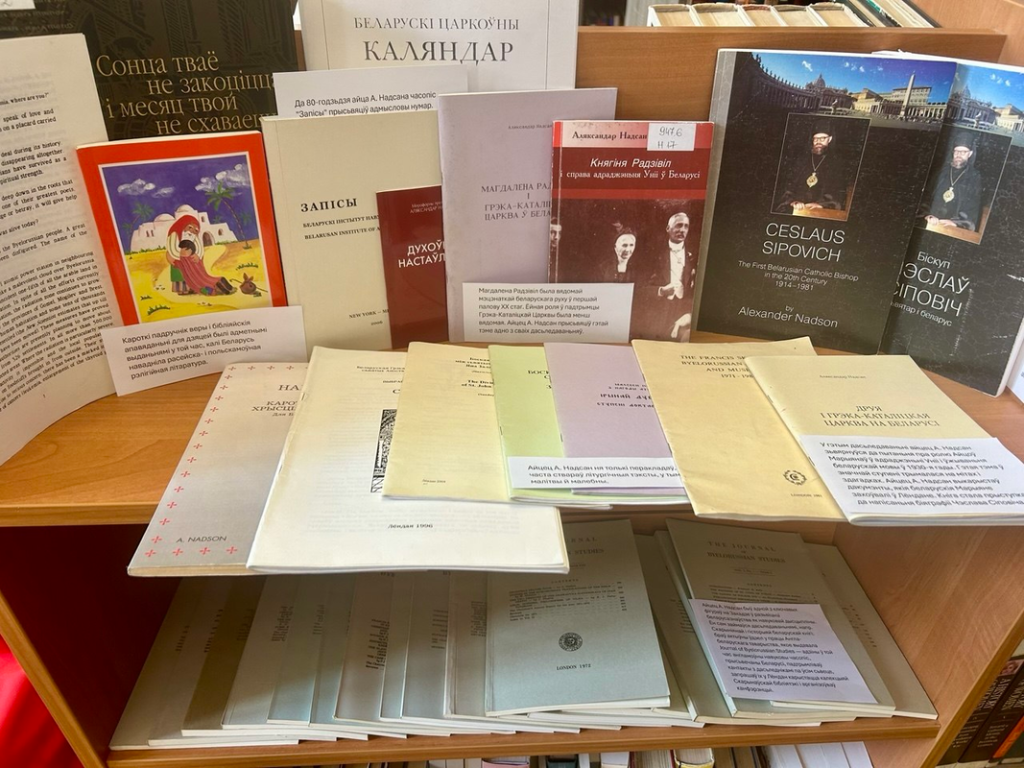 Апрача ўсяго, чытаньні дапаўняе цікавая невялікая выстава публікацыяў а. Аляксандра Надсана, выдавецкая дзейнасьць якога натхніла, напрыклад, на стварэньне сучаснага эмігранцкага выдавецтва «Скарына». Тут можна пагартаць ягоныя кнігі, артыкулы, бюлетэні, календары, у тым ліку тыя, якія ён самастойна набіраў, шыхтаваў, афармляў і друкаваў у Лёндане. А таксама — самыя знакавыя інтэрвію з а. Аляксандрам.