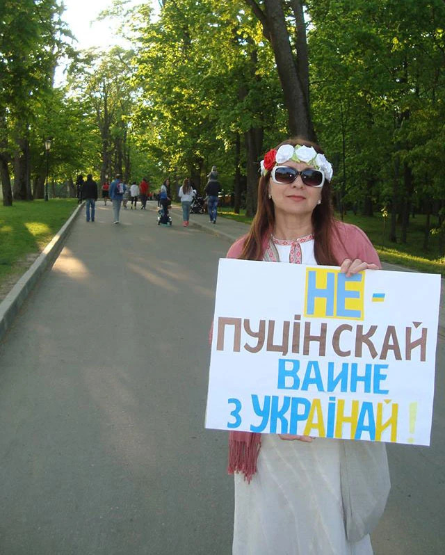 — Маё фота з анціпуцінскім плакатам актуальна да гэтай пары. Бо колькі людзей, лёсаў разбурана, знішчана гарадоў, сёл — жахліва! Мы і ў 2015-м, і ў 2016-м выходзілі з плакатамі каля расейскай амбасады ў Менску, супраць інтэграцыі з Расеяй. Як і ў снежні 2019-га з Паўлам Севярынцам ды іншымі актывістамі. Тады ў мяне быў плакат на ангельскай: «Гэта не інтэграцыя, а акупацыя!» У 2021-м выходзілі пасля забойства Вітольда Ашурка.