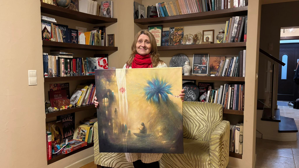 З сабой у эміграцыю мастачка ўзяла толькі дзве невялікія карціны. Яшчэ дзве, па якіх балела сэрца, прывезлі знаёмыя. Дзеля гэтага давялося ісці ў міністэрства культуры, аформіць вываз, заплаціць пошліну ды адказваць на шматлікія пытанні.
