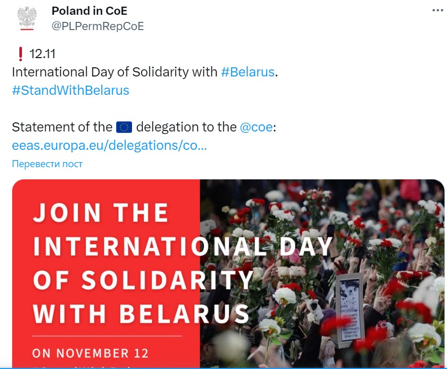 Адзначыла сваю салідарнасць з Беларуссю і Пастаяннае прадстаўніцтва Польшчы пры Савеце Еўропы:
