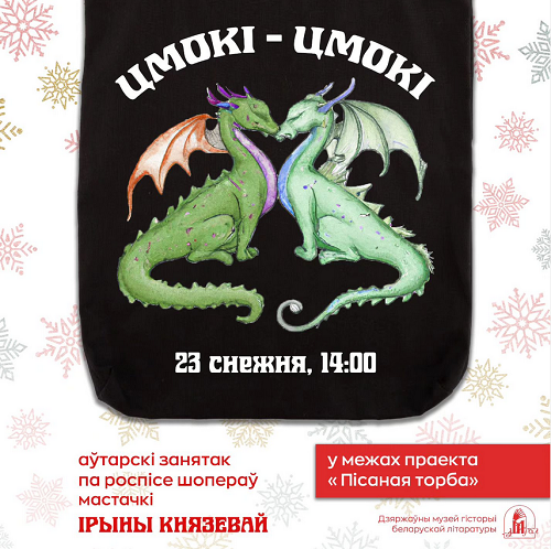 У суботу, 23 снежня, у музеі гісторыі беларускай літаратуры — майстар-клас па роспісе шопераў «Цмокі-цмокі» з Ірынай князевай у межах праекта «Пісаная торба».