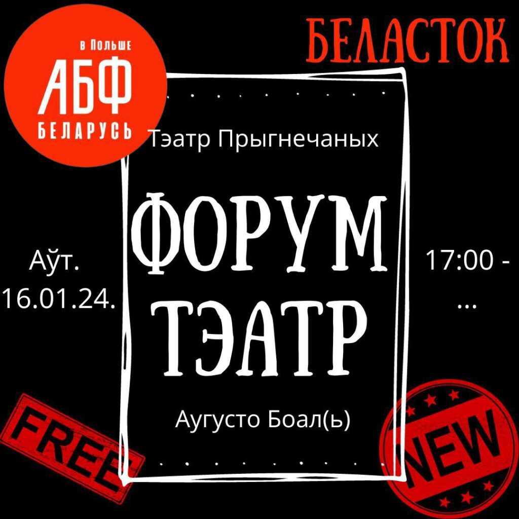 У беларускім хабе “Новая зямля” пачаў працу бясплатны гурток АБФ (“Актыўным Быць Файна”), які базуецца на мадэлі Тэатра прыгнечаных Аўгусто Боаля і носіць назву “Форум-тэатр”.